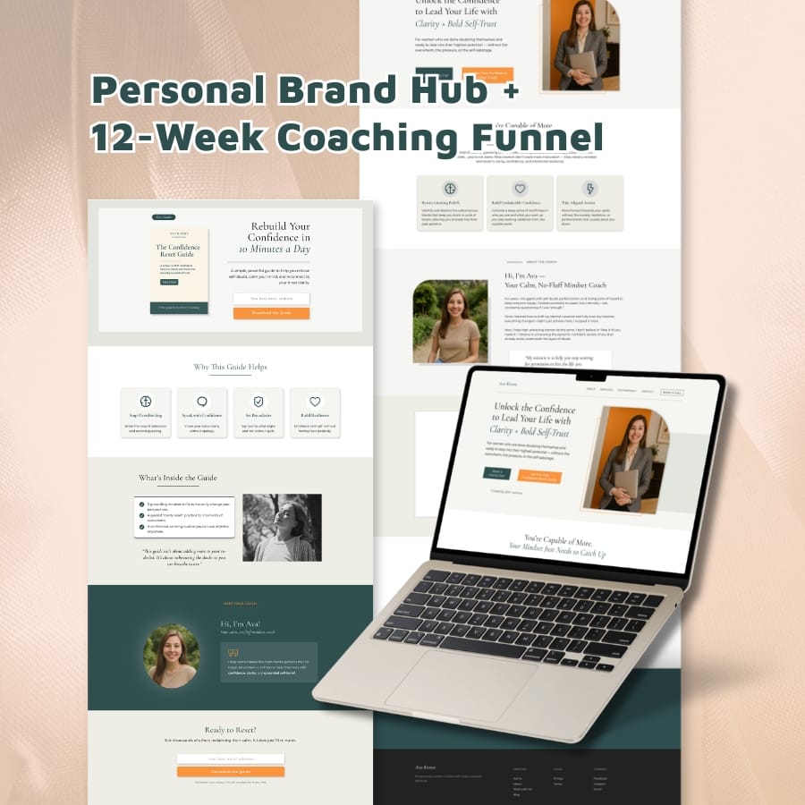 A clarity-led personal brand hub designed to guide visitors from free e-guide to discovery call and into a signature 12-week coaching program.