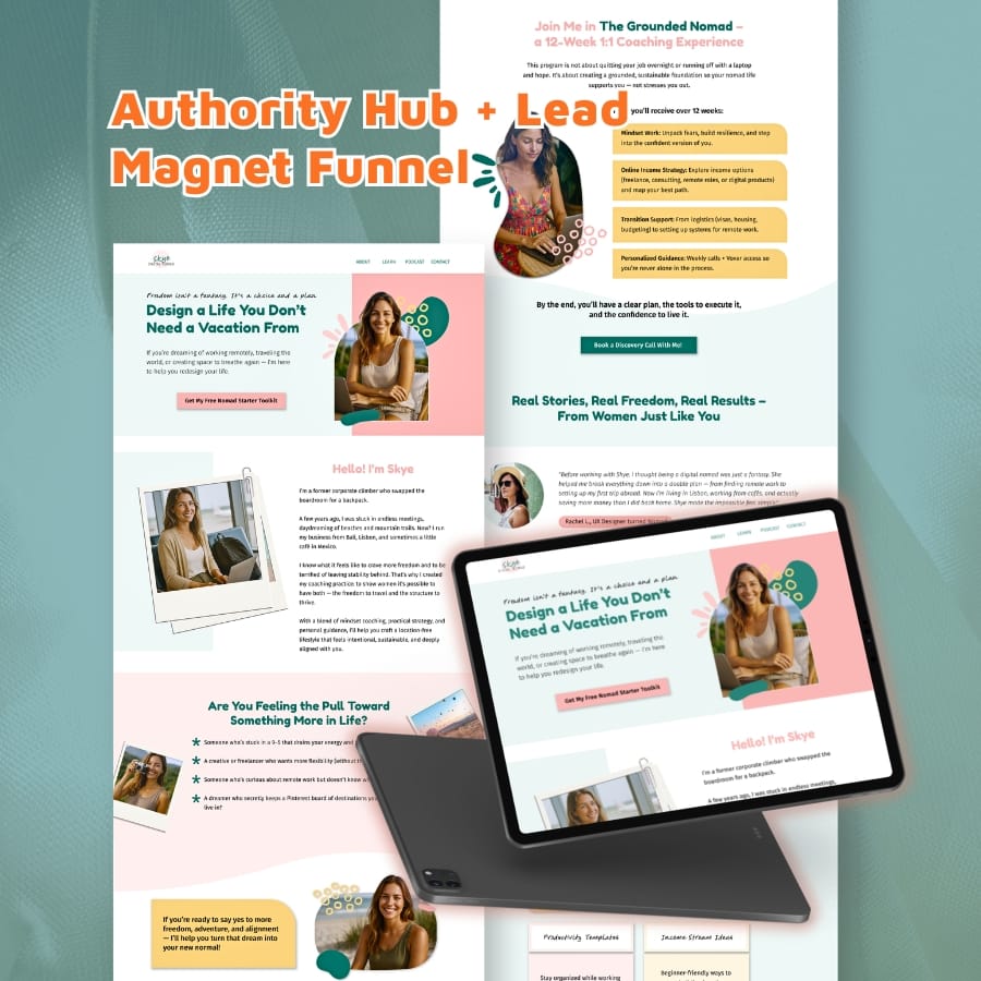 As a web and funnel designer for coaches, consultants and course creators, I offer both diagnostic clarity and focused, strategic funnel builds. I design conversion-driven landing pages and funnels built around one clear offer — keeping the structure simple, strategic, and easy to navigate.