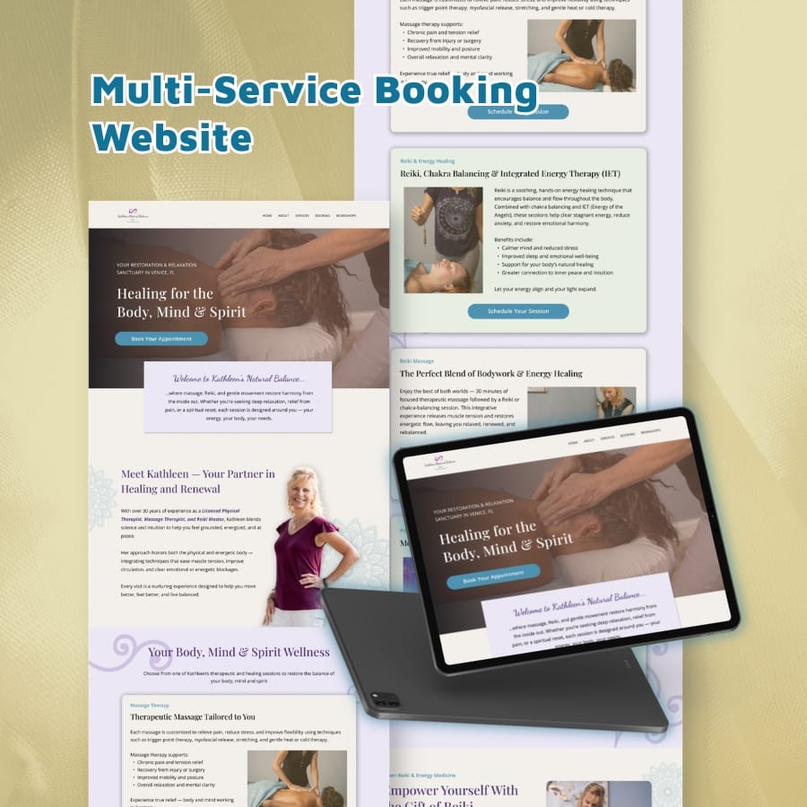 A structured homepage designed to clarify multiple healing services and guide visitors confidently toward session bookings.